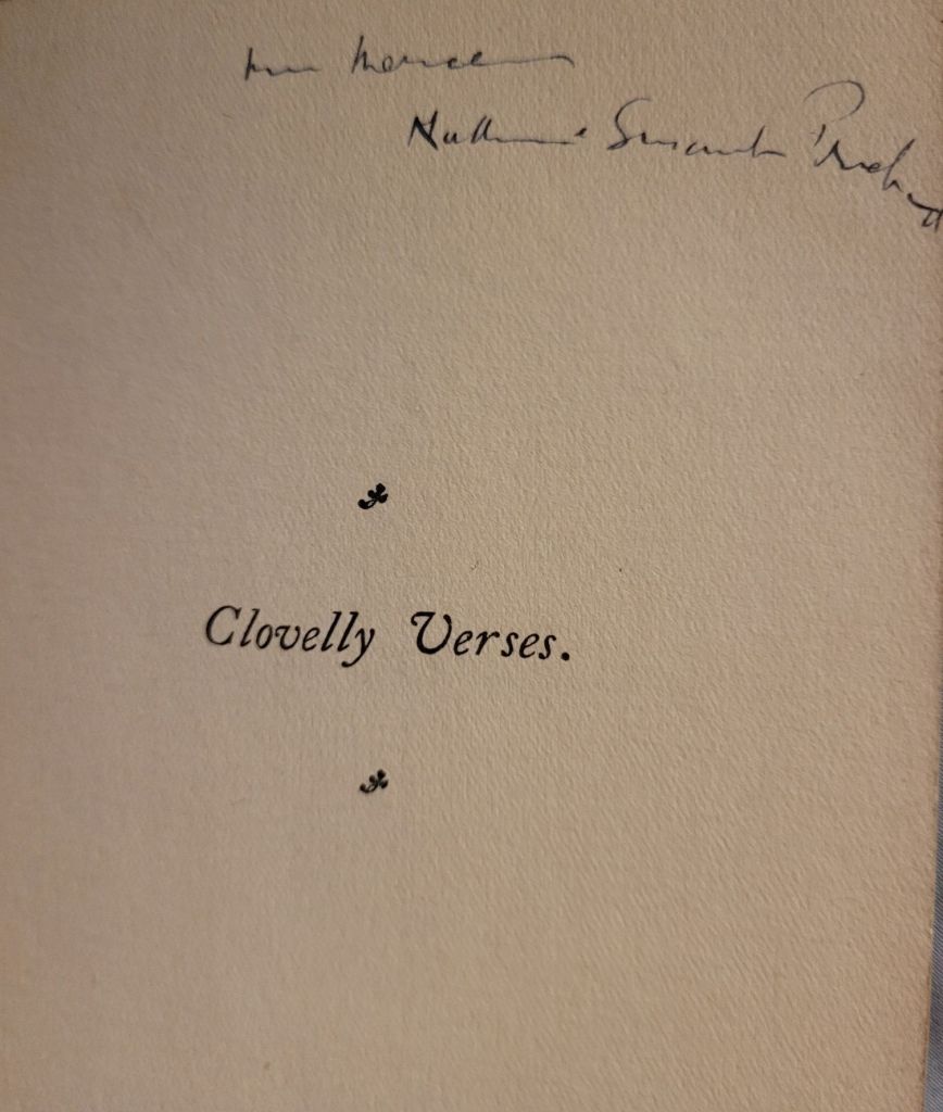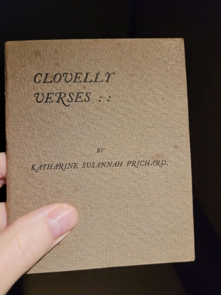 I’m only missing a few Katharine Susannah Prichard books from my collection and so these days filling in a gap is rare – and often expensive. I wasn’t expecting to come across a copy of Clovelly Verses, especially not at a price I could stretch to. But there it was in my Ebay alerts for $200.