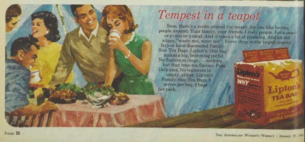 Yet tea bags weren’t commercially available until 1904, so the meme has developed since then. The closest I can find to a first hand source for its truth is in a comment by Andrew Dowsett on fellow Perth blogger Andrew Hamilton’s blog in 2007: